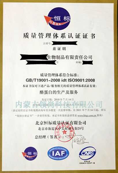 ISO9001質量管理體系認證證書
